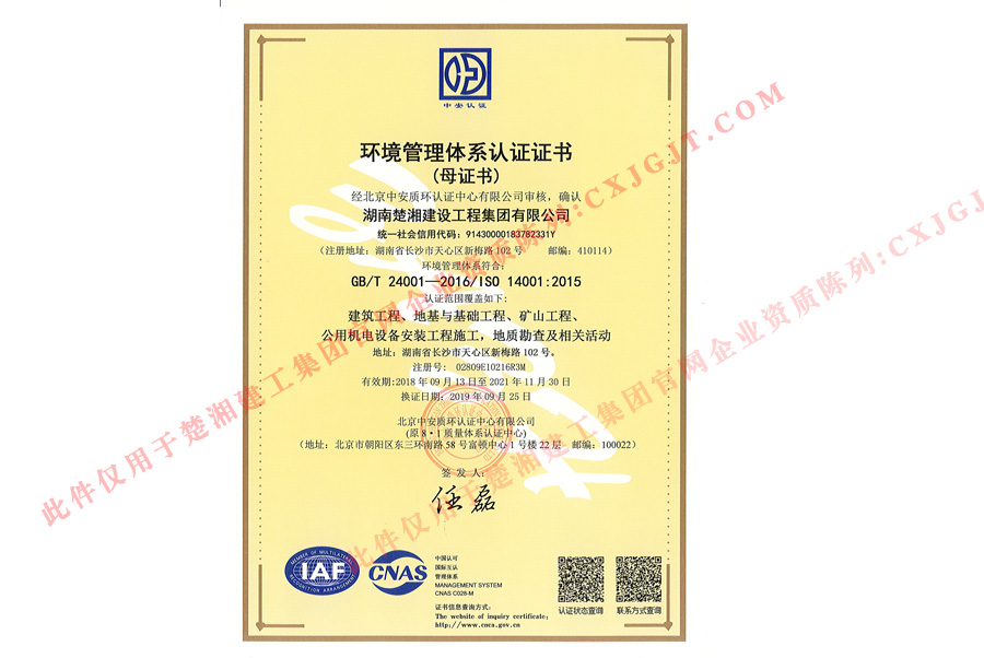 環(huán)境管理體系認(rèn)證證書