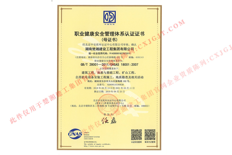 職業(yè)健康安全管理體系認(rèn)證證書